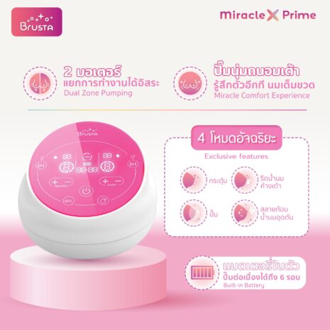 Brusta Miracle X Prime เครื่องปั๊มนมอัจฉริยะ 2 มอเตอร์ Germany Design แยกการทำงานซ้าย-ขวาอย่างอิสระ ปรับได้ละเอียดกว่าใคร ทั้งแรงดูดและความถี่ แรงดีไม่มีตก มาพร้อม 4 โหมดขั้นตอนการทำงานที่เพิ่มประสิทธิภาพขั้นสุด ปั๊มนุ่ม ดูดลึก เกลี้ยงเต้า น้ำหนักเบา พกพาสะดวก