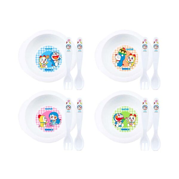 Natur ถ้วยซุปพร้อมช้อนส้อม Baby Feeding Ware ลาย Doraemon มีขนาดเหมาะสมกับมือเด็ก