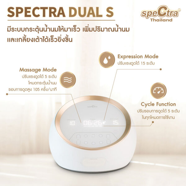 Spectra Dual S เครื่องปั๊มนมสเปคตร้าระบบ 2 มอเตอร์ เกรดโรงพยาบาล โหมดการใช้งานครบ ดูดนุ่ม